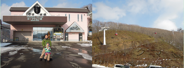 這就是我們等一會兒要搭乘的車廂。參觀熊牧場是JPY2,300/人,就包含纜車的費用了。其實在JR登別車站有販售登別三大主題樂園(NIXE,伊達時代村和熊牧場)的套票,但因為不確定我們是不是都要去,所以我們並沒有買,不過看來買是正確的。