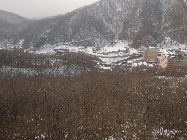 山下是溫泉街,如果是春季來,滿山的綠葉應該也蠻壯觀喔!