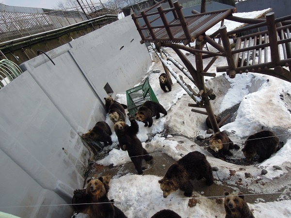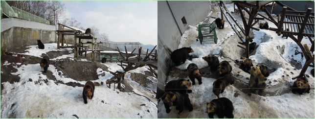 牠們為了得到飼料,已經練就雙腳持續站立的本領,更有甚者還揮舞雙爪。(http://youtu.be/LE0GEcs6Qto)聽一下我的現場即時配音,應該就能夠體會我所說的熊牧場出乎意外地好玩是什麼意思了。