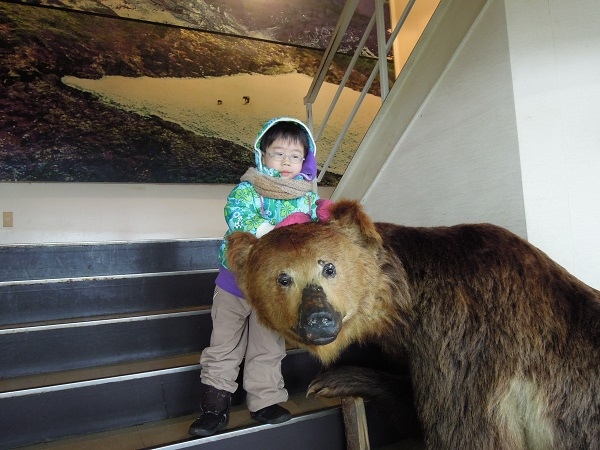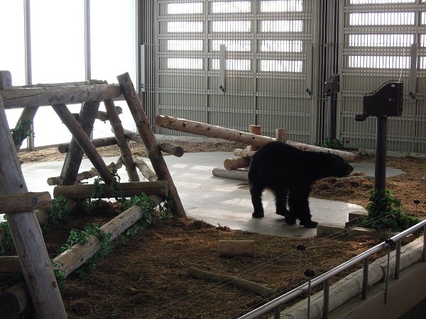 還有一個室內的空間是專門介紹熊的行為特徵的,有一隻小熊在工作人員的口令中做著各種動作。只可惜聽不懂日文,只好用猜的。